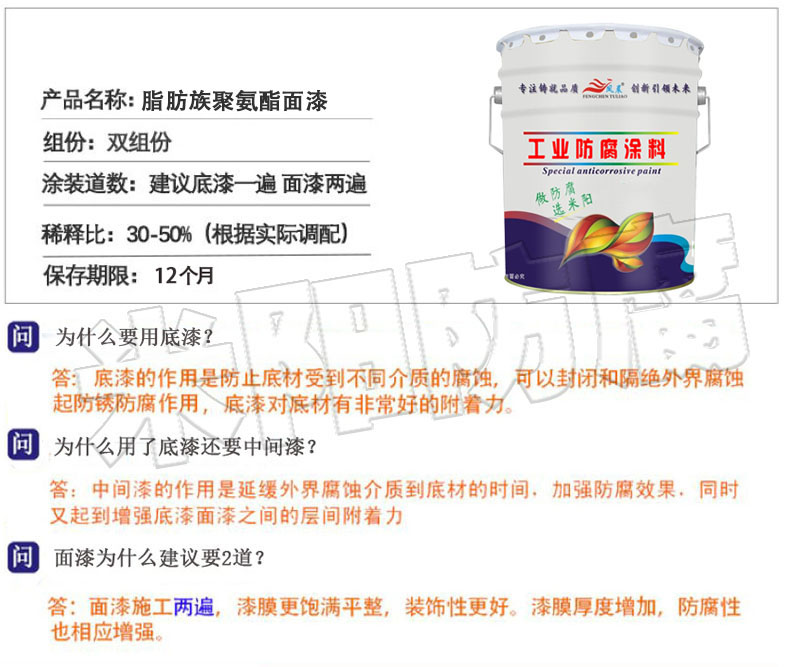 脂肪族聚氨酯面漆别名脂肪族聚氨酯防腐漆,为双组份,其组成如下: